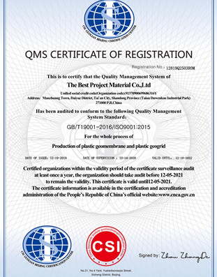 ? ? ? 泰安 佳路通 工程材料有限公司(簡稱為佳路通)自于2007年成立以來一直致力于土工合成材料的研發、生產、銷售和服務。公司主導產品有光面土工膜,糙面土工膜,復合土工膜,以及短纖土工布,長絲土工布,機織土工布,聚丙烯編織土工布,經編滌綸土工格柵,塑料土工格柵,鋼塑土工格柵,玻纖土工格柵,HDPE土工格室,復合排水網,排水板,排水網,膨潤土防水毯等。 公司座落于馳名中外的泰山腳下,東距京滬、京福高速公路泰安站僅兩公里,與京...